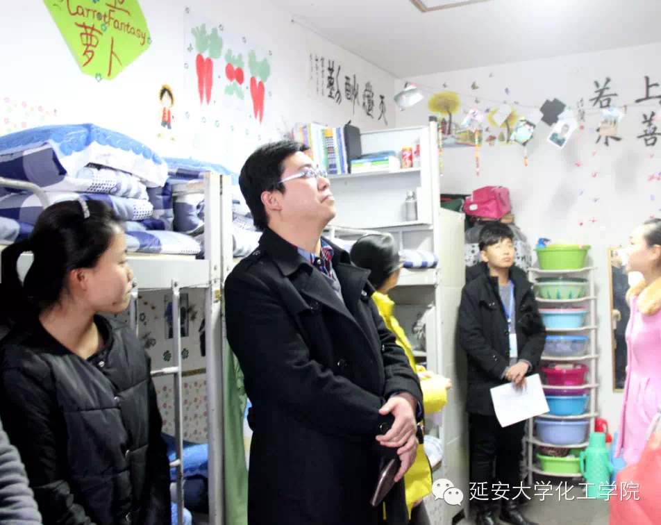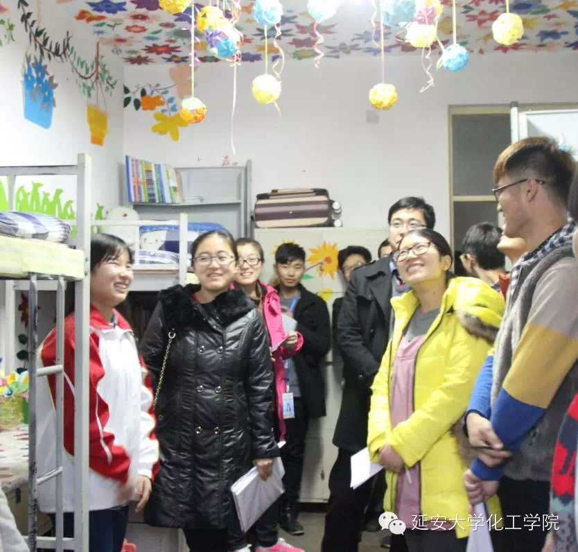 2015年12月11日16时,我院党委秘书申圆圆、团委书记韩盟、辅导员徐菁、教务员白万乔老师及20余名学生会干部对15级学生宿舍装扮担任评委。