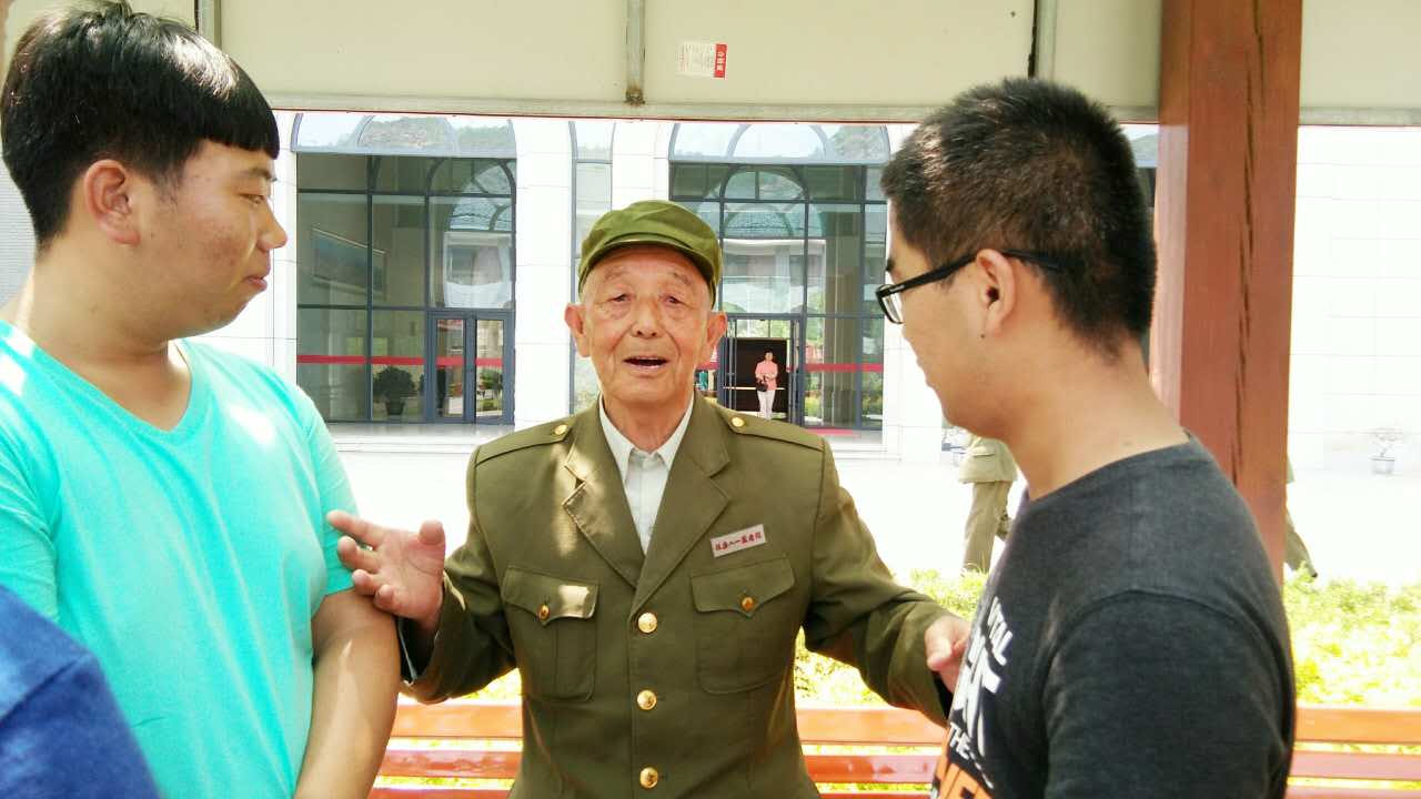 同学们在班长刘安宇的组织下进行集体合唱:黄河大合唱、强军战歌等。充满着青春阳光的歌声,不仅唱到了老人们的心里,也唱出了一个时代的记忆,多少革命烈士用自己的生命才换来了我们如今和平安宁的生活。老人们也一展歌喉,他们虽然年事已高,但那铿锵有力的歌声无不彰显革命精神。临走前,一位老人说,想让同学们把拍的照片洗出来送给他们一份,他们年纪越来越大,也许再过几年、十几年,他们这样的一群人就彻底消失了。他们被称作国家的宝物,是因为这几十年见证了国家的记忆和故事。他们想拍照,是想留下证明,当年,还有这样一群老兵,在这样的地方,有着这样不平凡的经历和记忆。这段话,令人伤感,更令人感慨!