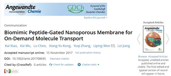 化工学院张玉琦教授与中国科学院理化技术研究所闻利平研究员合作完成的仿生纳米通道领域的最新研究成果于11月15日在国际化学领域顶级期刊《德国应用化学》(AngewandteChemie International Edition)在线发表。张玉琦教授为第一通讯作者,我校分析化学2015级研究生吴凯为共同第一作者。