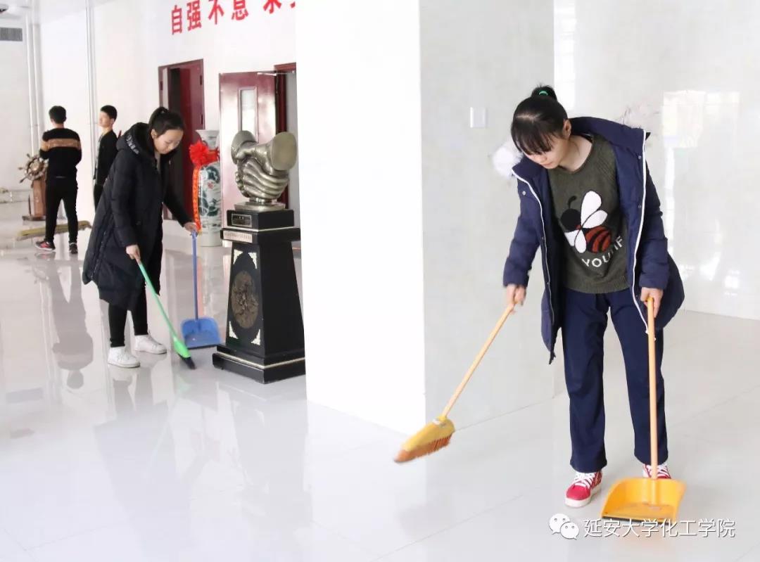 3月5日下午2点至四点,辅导员申圆圆和张哲豪带领应化17级学生对能化大楼进行了彻底清扫,一至九层楼焕然一新,彰显着新学期的新风气。过控17班的同学打扫了宿舍公共区域的卫生,让宿舍环境更加整洁,更为清新怡人。通过这次活动,同学们做了付出与奉献,体会到了合作的重要性,加深了与保洁人员的联系与尊重,也感受到了劳动的快乐。