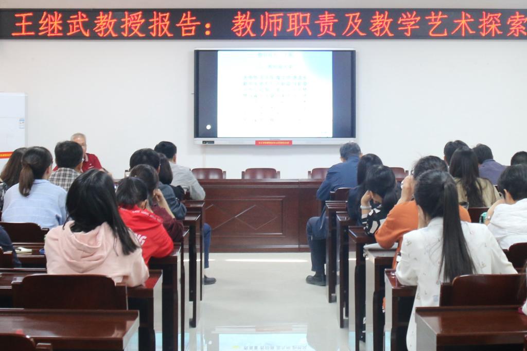王教授以自己四十多年教书育人体会凝练而成的《教书育人三字歌》为蓝本,从五个方面对教师职责及教学艺术进行讲述。其中“教师最光荣”部分是王教授着重讲的内容,他提出“教育事业是民族复兴的重要基础工程”,强调作为一名高校教师必须思想作风、道德品行、责任感和进取心等方面做好学生的引路人;在《教学是技术也是艺术》部分,要求教师的基本功要扎实,要用自己的匠心,启发学生的思维。王教授精彩的报告迎来了台下阵阵掌声,大家纷纷表示受益匪浅。