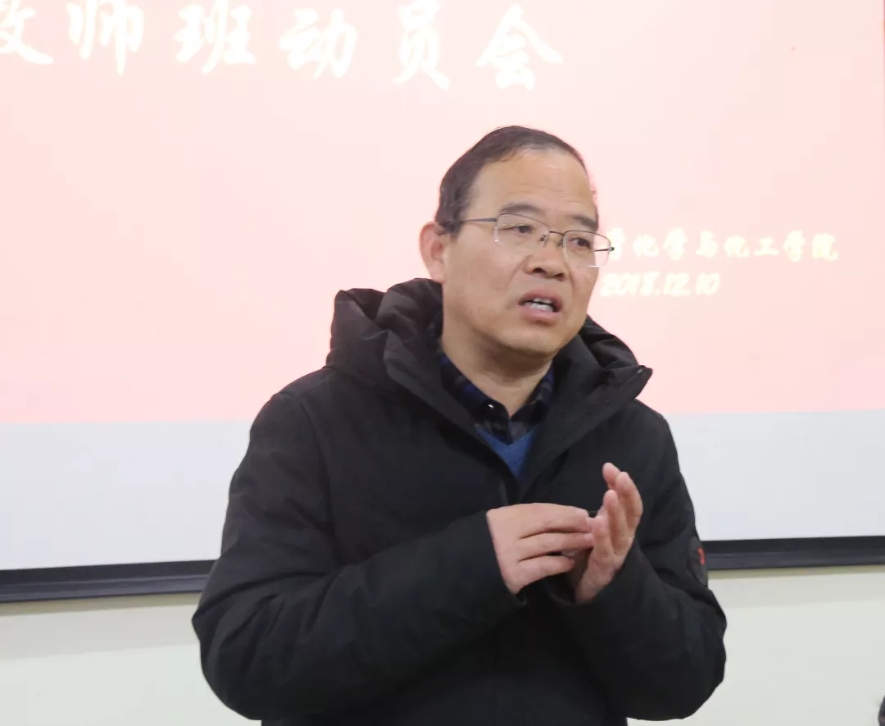 为了贯彻落实《延安大学卓越人才培养计划项目》的要求,化工学院在2018级化学专业91名学生中选取30名左右专业兴趣浓厚、综合能力强、具有较好从教潜质的学生,成立“化学卓越教师实验班”。2018级化学卓越教师实验班动员大会12月10日在周扬楼2104教室召开。化工学院王记江副院长,陈小莉教授,王升文副教授、崔华莉副教授、杨晓军副教授、柴红梅副教授、王潇副教授、杨华老师及化学18全体学生参加本次动员大会。
