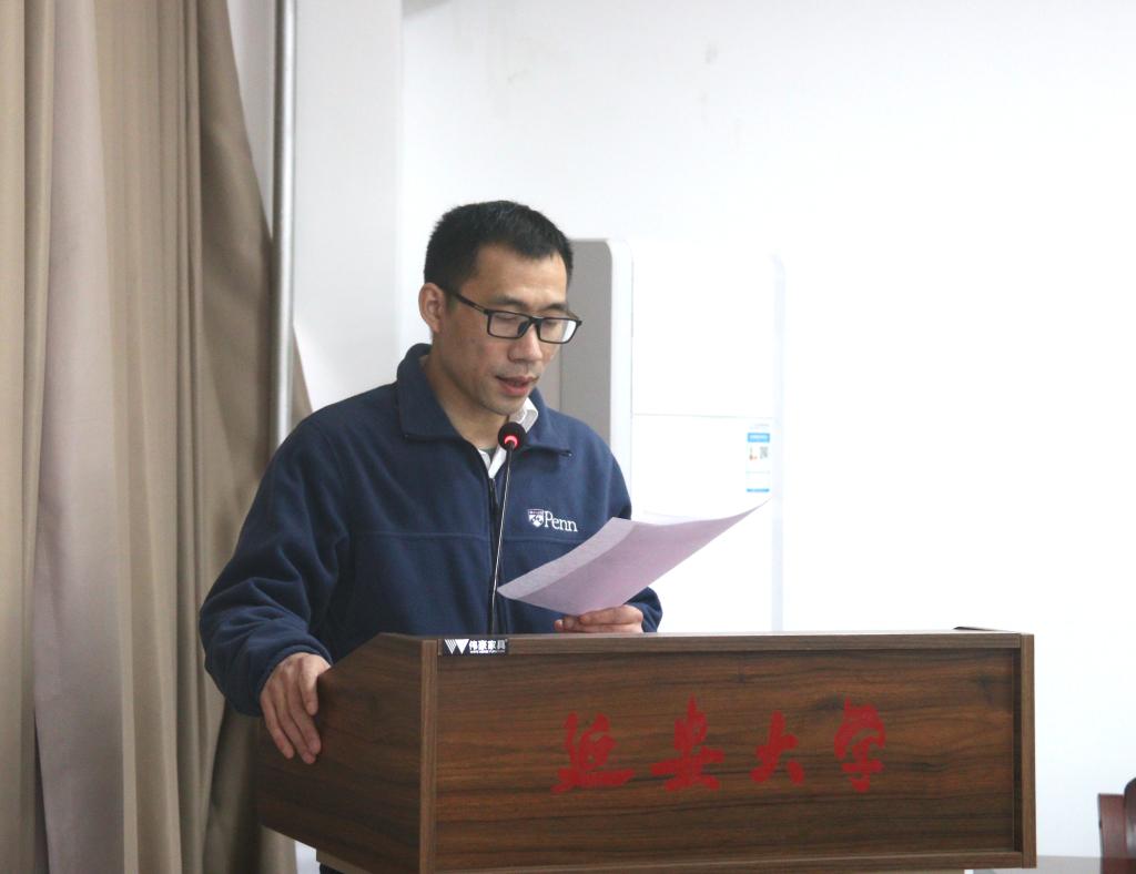 最后,武忠远教授作了讲话。他首先感谢武汉工程大学对延安大学学科建设的长期关注和实质性支持,同时要求两位新任博导认真学习领会武汉工程大学有关研究生培养教育的规定,潜心科学研究,努力培养高质量的博士生,着力促进我校博士点的申报工作。