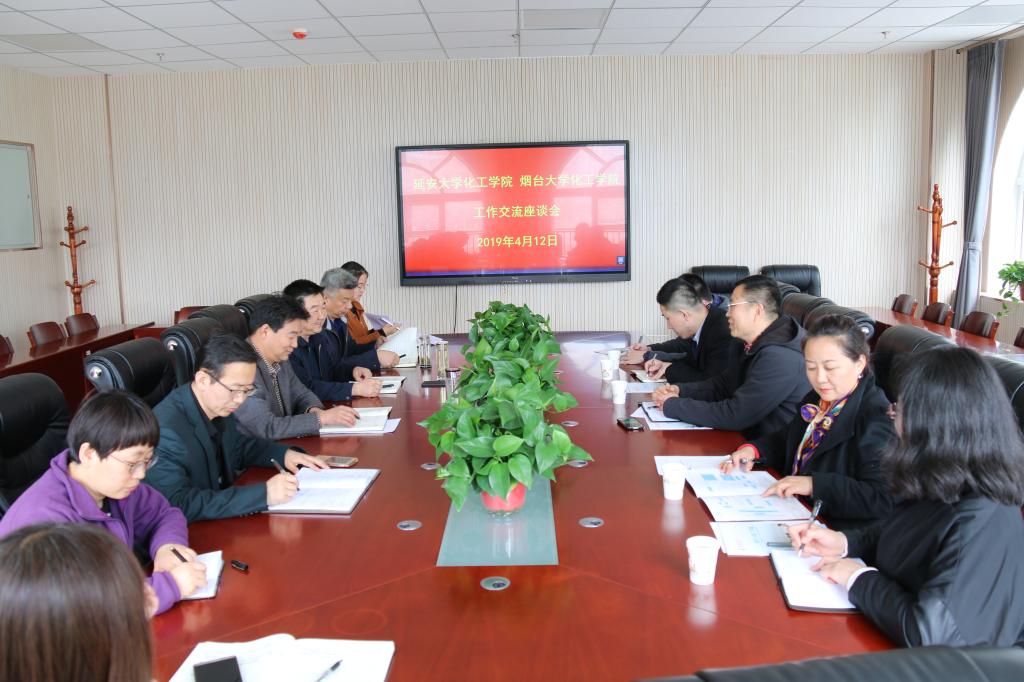 我校化工学院院长张琰图简要介绍了延安大学的校史校情及学院发展历程,就我院落实习近平总书记批示和全国教育大会精神,在学科建设、师资队伍建设、实验平台建设、博士点申报等情况和近五年来学院所取得的主要成绩;党委副书记刘雨录分别从辅导员队伍建设、学生管理与教育、就业促进等三个方面谈了了学院学生工作的特色及亮点;王记江、张玉琦副院长分别就自己的分管本科、研究生人才培养方面的做了介绍。段志国书记从烟台大学化工学院学院的发展历程、师资建设、优势学科、科研平台的搭建等方面的情况做了介绍。