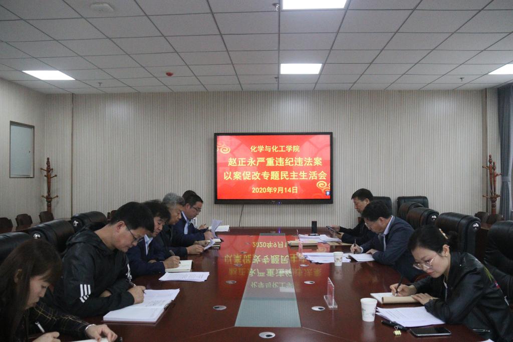 9月14日下午,化工学院在能化大楼第一会议室召开学院领导班子赵正永严重违纪违法案以案促改专题民主生活会。校党委书记张金锁,督导组联络员、对外交流与合作处高媛媛到会指导。会议由督查组成员、泽东干部学院院长杜红荣主持。