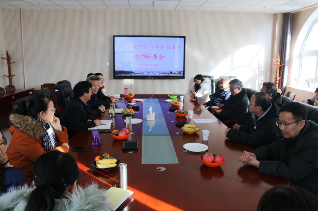 1月11日下午,化工学院退休教师座谈会在学院会议室举行,学院全体科级以上行政成员、系主任、各支部书记、部分教师代表,以及我院2020年、2021年退休教师齐广才、张理平、王升文、张谋真参加此次座谈会。会议由化工学院党委书记刘雨录主持。