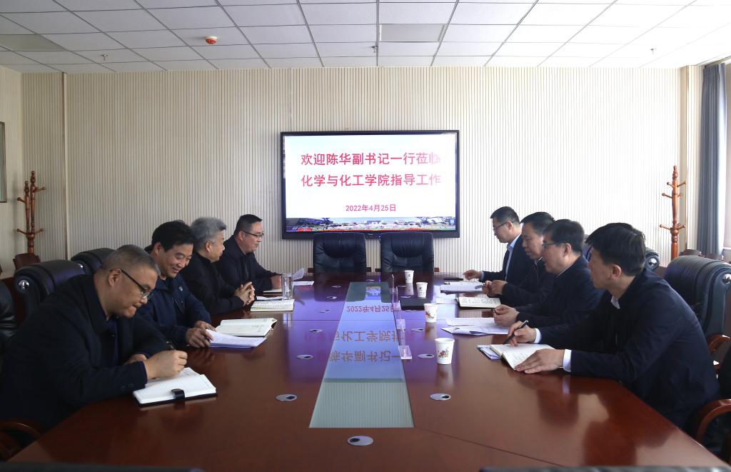 4月25日上午,校党委副书记陈华到化工学院调研学生工作,学工部部长张翔、副部长王彦杰、赵鹏飞陪同调研。书记刘雨录、院长张琰图、思政专员李学周、副书记赵芝瑞及全体辅导员参加了座谈会。