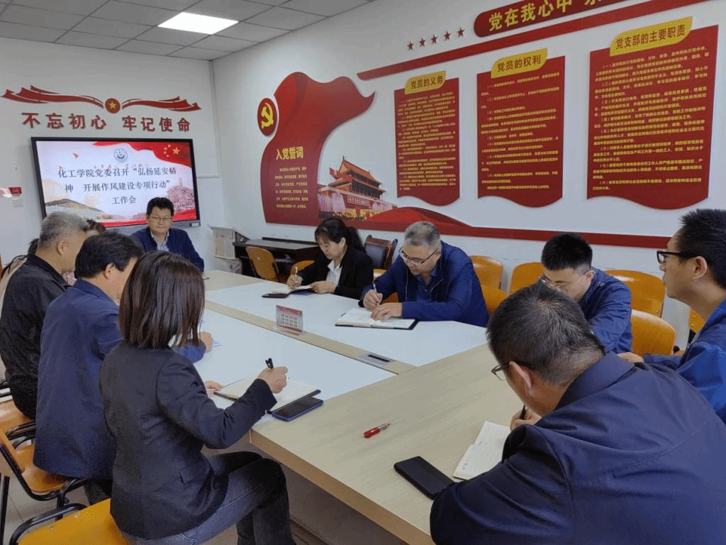 9月23日上午,化工学院在化工大楼党员活动室召开“弘扬延安精神、开展作风建设专项行动”工作会,全体党委委员和各支部书记参加会议,院党委书记刘雨录同志主持会议。
