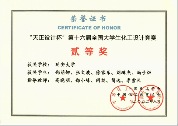 近日,从中国化工学会、中国化工教育协会公布的2022年“天正设计杯”第十六届全国大学生化工设计竞赛授奖团队获悉,我校代表队荣获二等奖1项、三等奖7项的优异成绩。