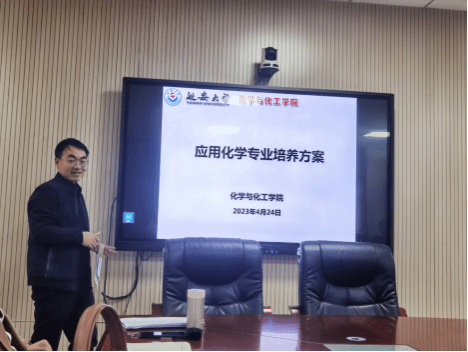 接着,应用化学专业负责人白万乔老师就应用化学专业的培养方案做了详细的解读,白万乔老师分别从应用化学的“专业定位”、“人才需求分析”、“人才培养方案”等方面进行了介绍,白万乔老师指出应用化学旨在培养从事化学研究、开发、生产、管理等不同相关领域工作的高素质应用型人才,特别是要注重实践与理论两方面的培养,为社会发展培养出更多的高质量创新型人才。