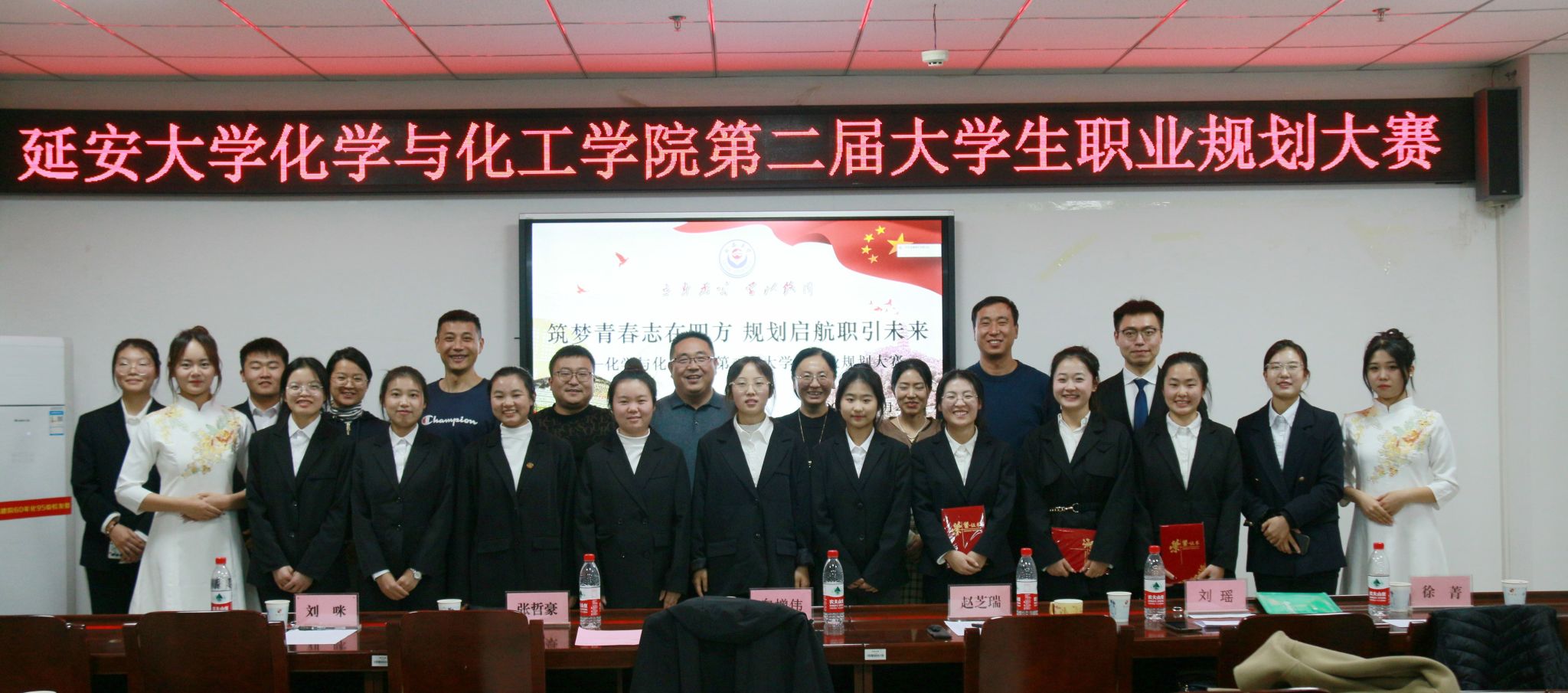 11月22日下午,化学与化工学院在化工大楼216会议室举办第二届大学生职业规划大赛。学工部学生就业创业科科长刘瑶,中公教育延安分校副校长白增伟,院党委副书记赵芝瑞,辅导员徐菁、苏清元、张哲豪、刘咪参加大赛并担任评委。