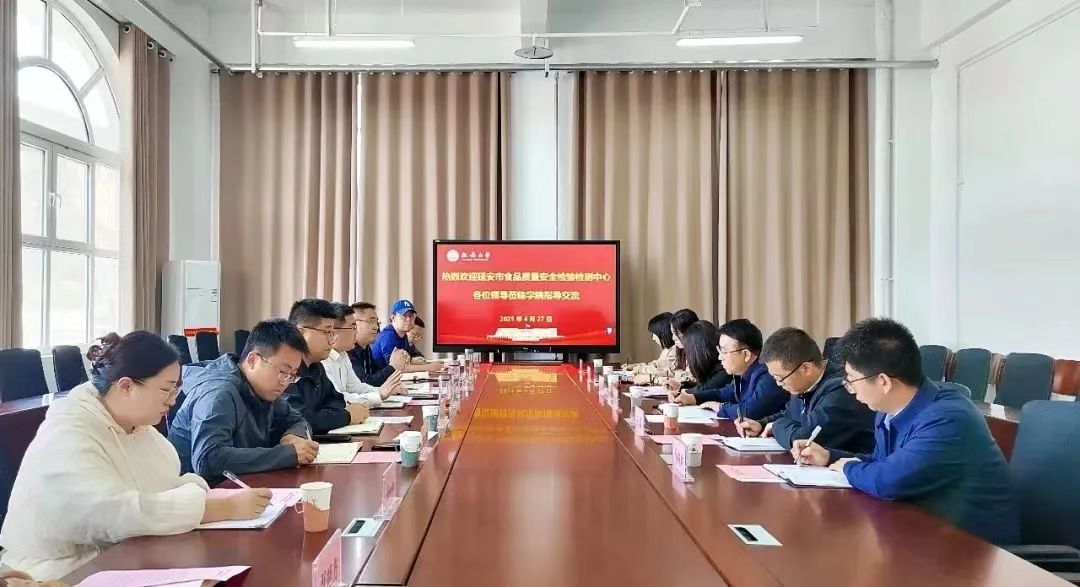 会上,甄延忠对郑江一行表示热烈欢迎,并介绍了学院在学科建设、人才队伍建设、人才培养、科学研究及服务地方经济发展方面的取得的成绩。随后,赵芝瑞介绍了学院党建工作的特色做法,就党建如何与业务相融合进行了交流。杨春明详细介绍了学院在分析化学、食品安全检测、新材料研发等领域的科研进展及成果转化情况。郑江介绍了市食检中心的基本情况和技术需求。他希望双方能在党建共建、科研攻关、设备共享、人才联合培养等方面深化合作,共同提升延安市食品安全检测的业务水平。最后,与会人员围绕党建品牌创建、科研项目合作、检测技术优化、实验室资源共享、学生实习就业等议题展开深入交流,并达成多项合作意向。