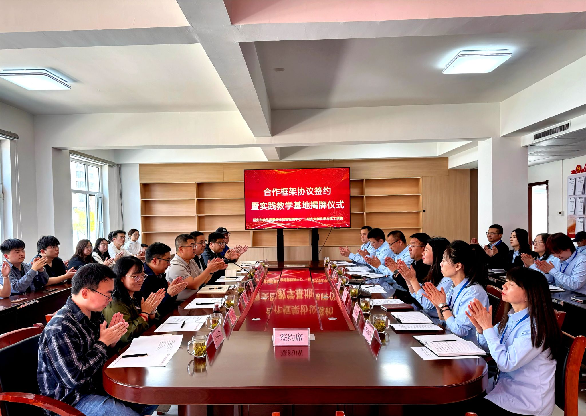 2025 年 5 月 13 日上午,我院与延安市食品质量安全检验检测中心在食检中心举行了签约、校地合作揭牌暨工程硕士实习会议。学院全体领导班子、实习带队教师、材料与化工工程硕士专业实习学生和市食检中心全体干部参加了会议。会议由食检中心党支部书记、副主任王琳主持。