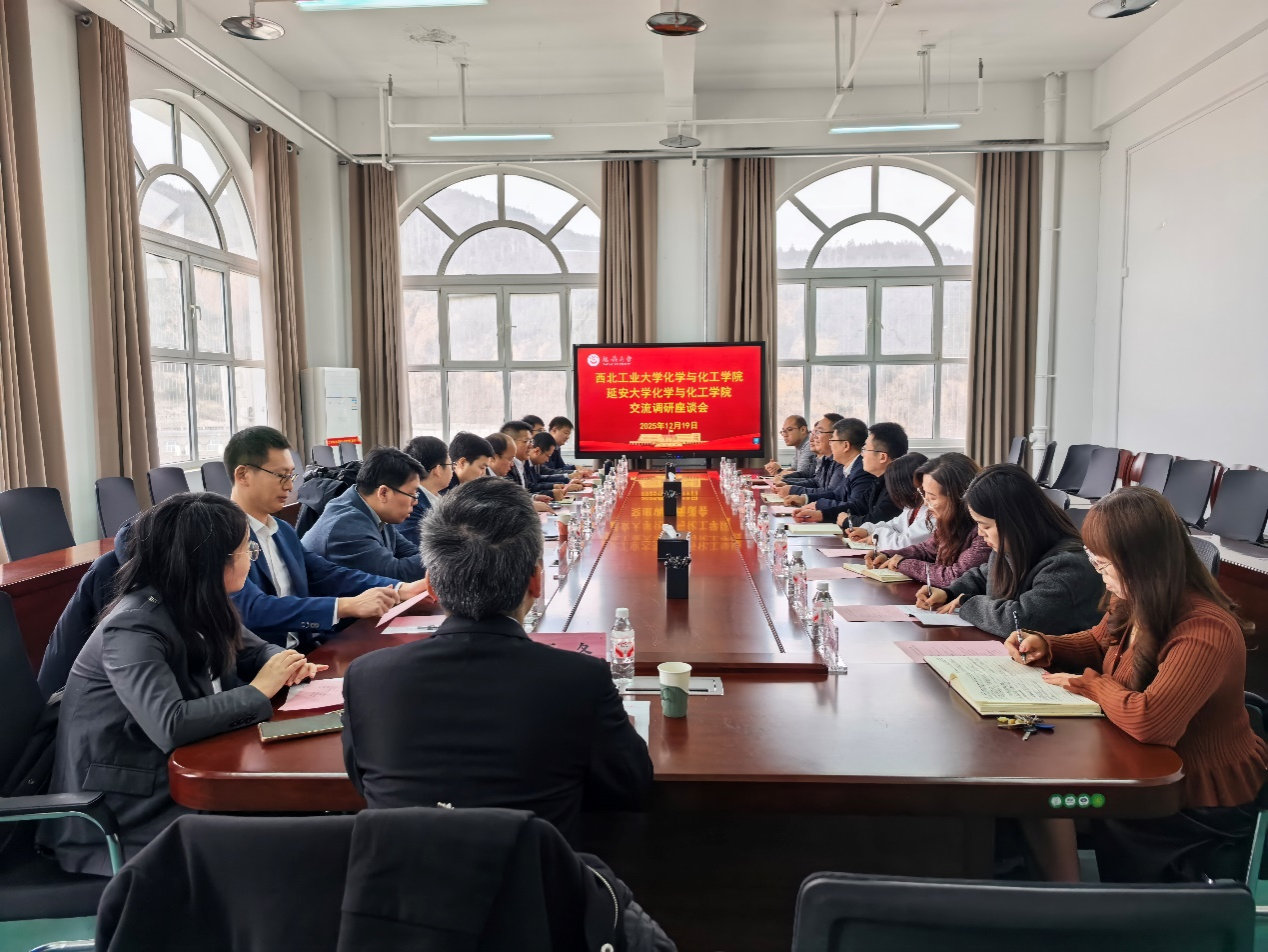 为深化院际合作、推动协同发展,12月19日下午,西北工业大学化学与化工学院院长顾军渭、党委书记傅茂森一行11人赴我院开展专题调研交流。交流会由院党委书记赵芝瑞主持。