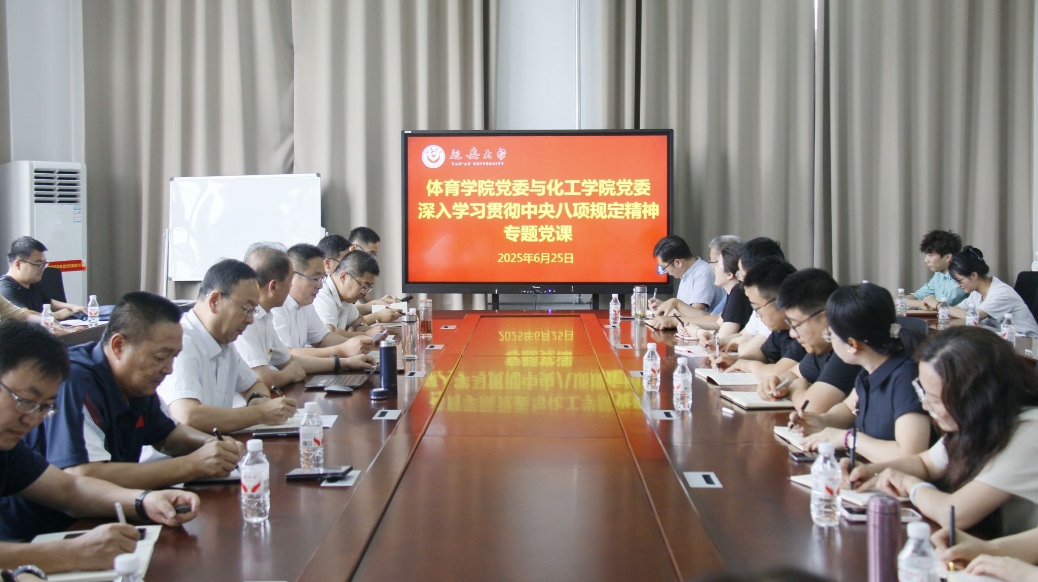 本网讯 为扎实推进中央八项规定精神学习教育走深走实,6月25日下午,校党委委员、副校长付峰为化工学院和体育学院领导班子、党支部书记、副科级以上干部、教师以及学生党员讲授题为《深入学习贯彻中央八项规定精神》的专题党课。党课由化工学院党委书记赵芝瑞主持。