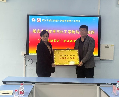 4月8日,学院与延安市宝塔区第二中学在宝塔区第二中学举行“化学卓越教师实训基地”授牌仪式。宝塔区第二中学副校长张娟,教务科封芳芳、纪珍珍,化学教研室高孝孝,薛盼;学院院长甄延忠、副院长简选,化学与应化系主任陈小莉,化学系主任崔华莉,化学系副主任高娇娇等共同出席。仪式由宝塔区第二中学副校长陈国宝主持。此次合作旨在深化协同育人机制,贯通化学专业师范生职前职后培养体系,为基础教育高质量发展培养具有延安精神特质的中学化学骨干教师。